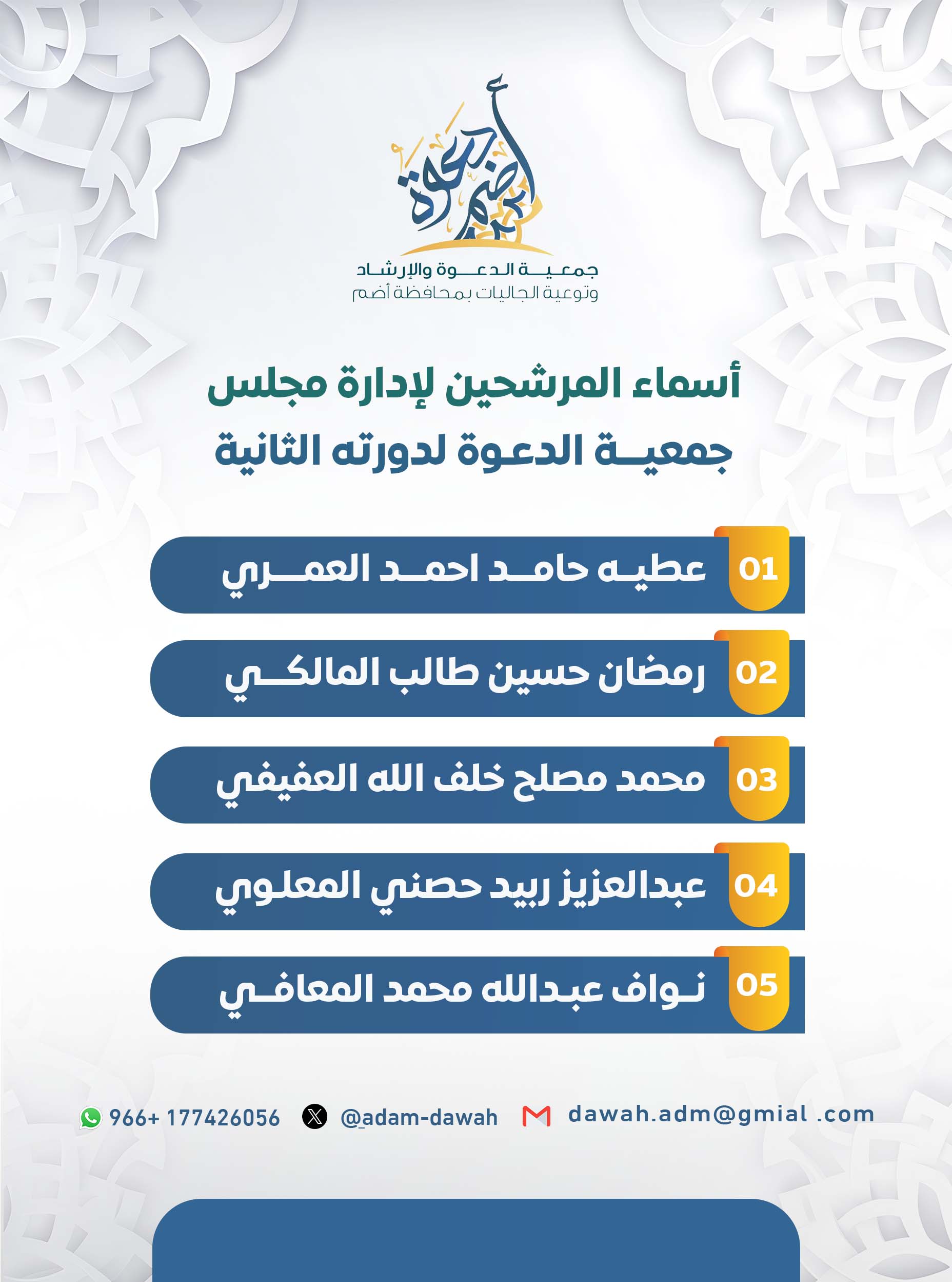 أسماء المرشحين لمجلس الغدارة لدورته الثانية .